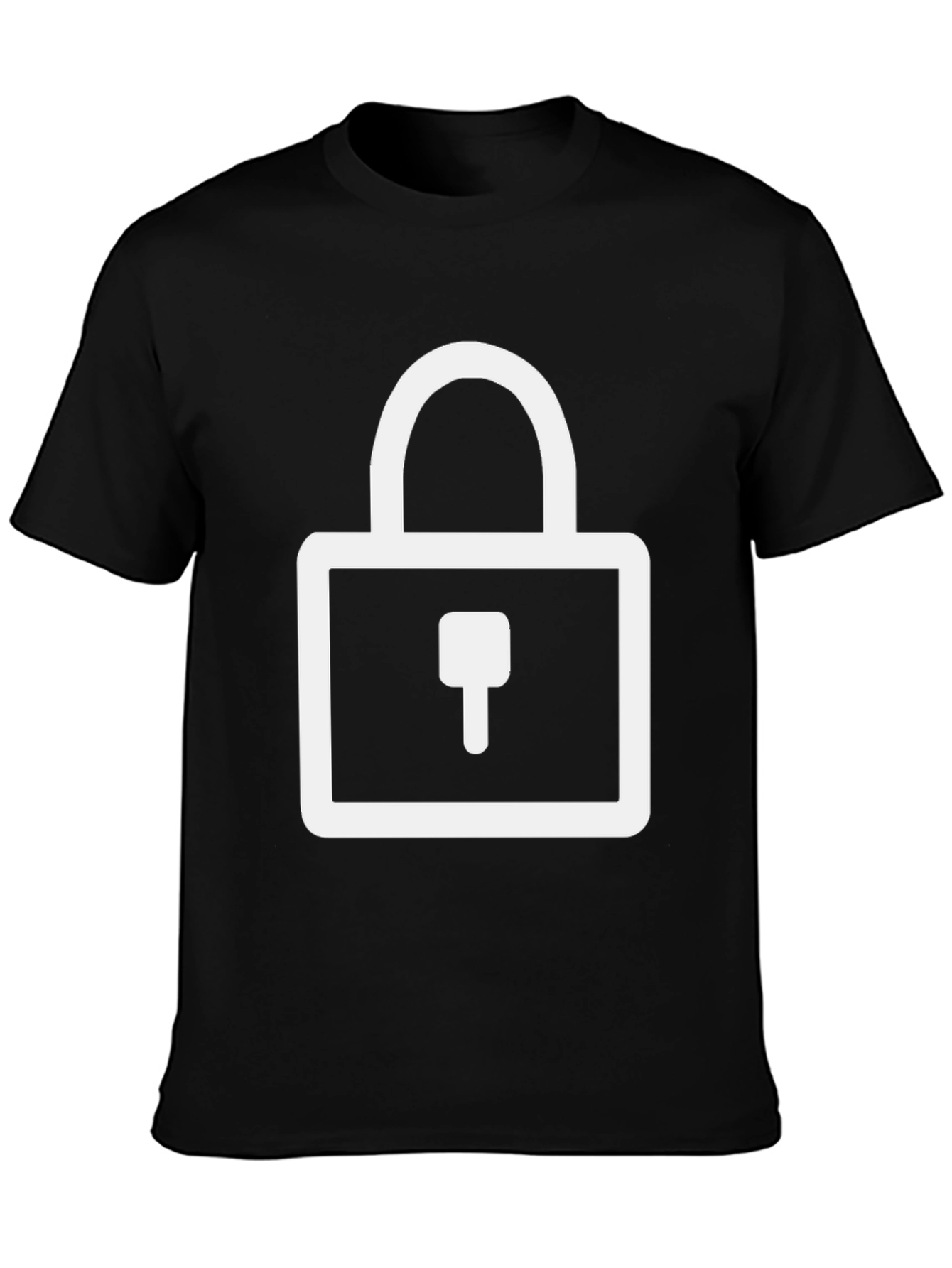Elevate your everyday style with this sleek black t-shirt. Crafted from a soft, comfortable fabric, this tee features a bold, minimalist white padlock graphic at the center. The design offers a modern, tech-inspired edge, making it perfect for casual outings, concerts, or relaxed weekends. Its simple yet eye-catching design is a cool conversation starter. Pair this statement piece with jeans, shorts, or layer it under a jacket for a versatile, effortlessly stylish look. Grab yours today and showcase your unique personality!